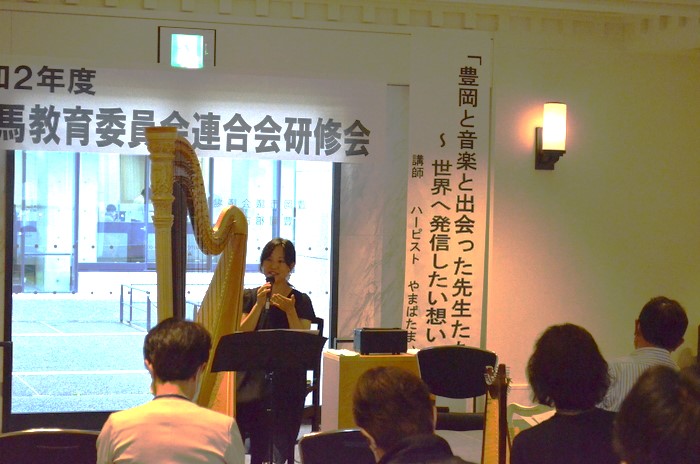 学校などで生徒様、教育関係者様に向けた、テーマに合わせた講話・講演会(音楽や音に関するお話、ハープ奏者になるまでのお話、人と接するお仕事のお話、子育てと演奏の両立のお話など)は好評であり、そこにハープの生演奏も加わり、話し聞く、音を聴く、最後は自分の心の声を訊く。
